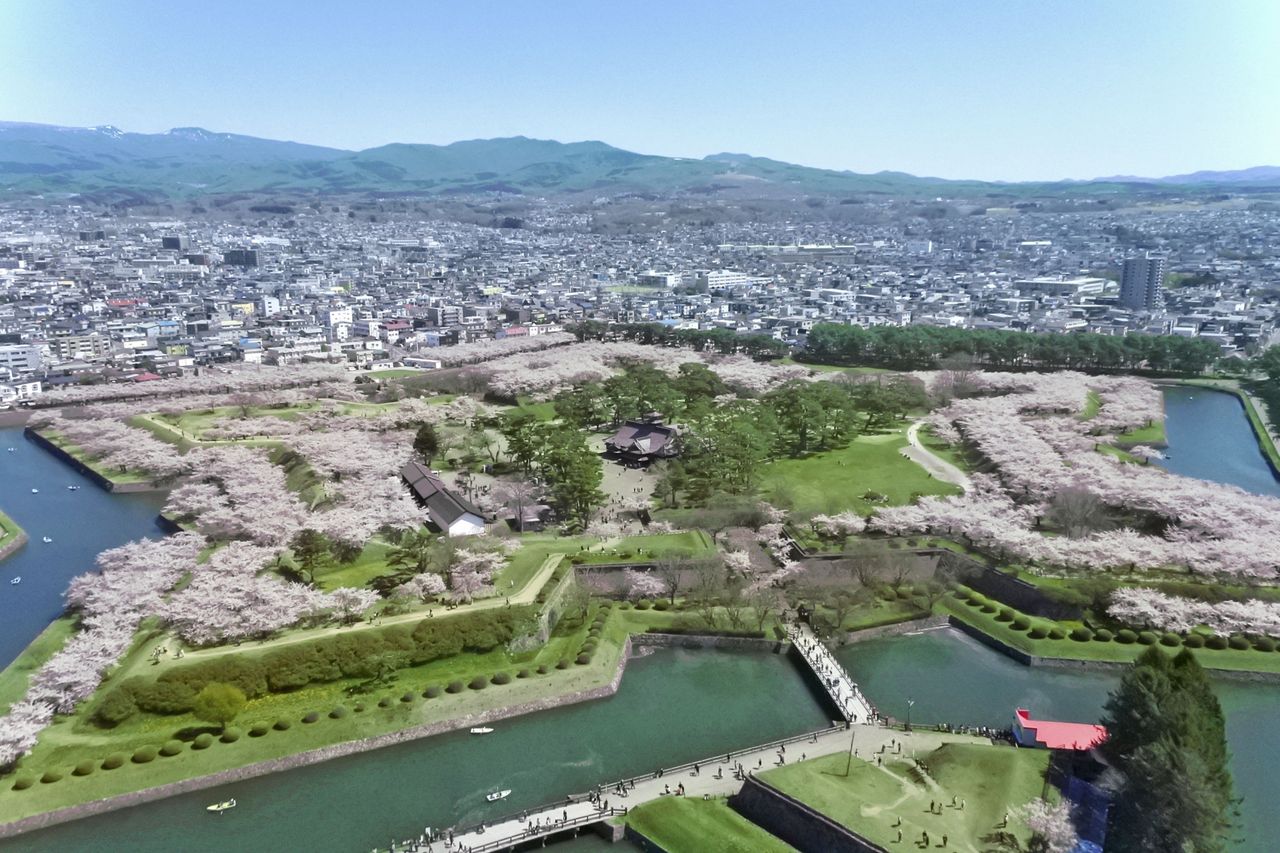 函館是一個擁有悠久歷史的城市,結合傳統的日本魅力與壯麗的景觀。五稜郭公園是櫻花季節必去的景點,星形護城河周圍的櫻花樹,營造出如畫的場所,加上從函館山俯瞰的壯麗景色,提供融合歷史和自然的美麗。