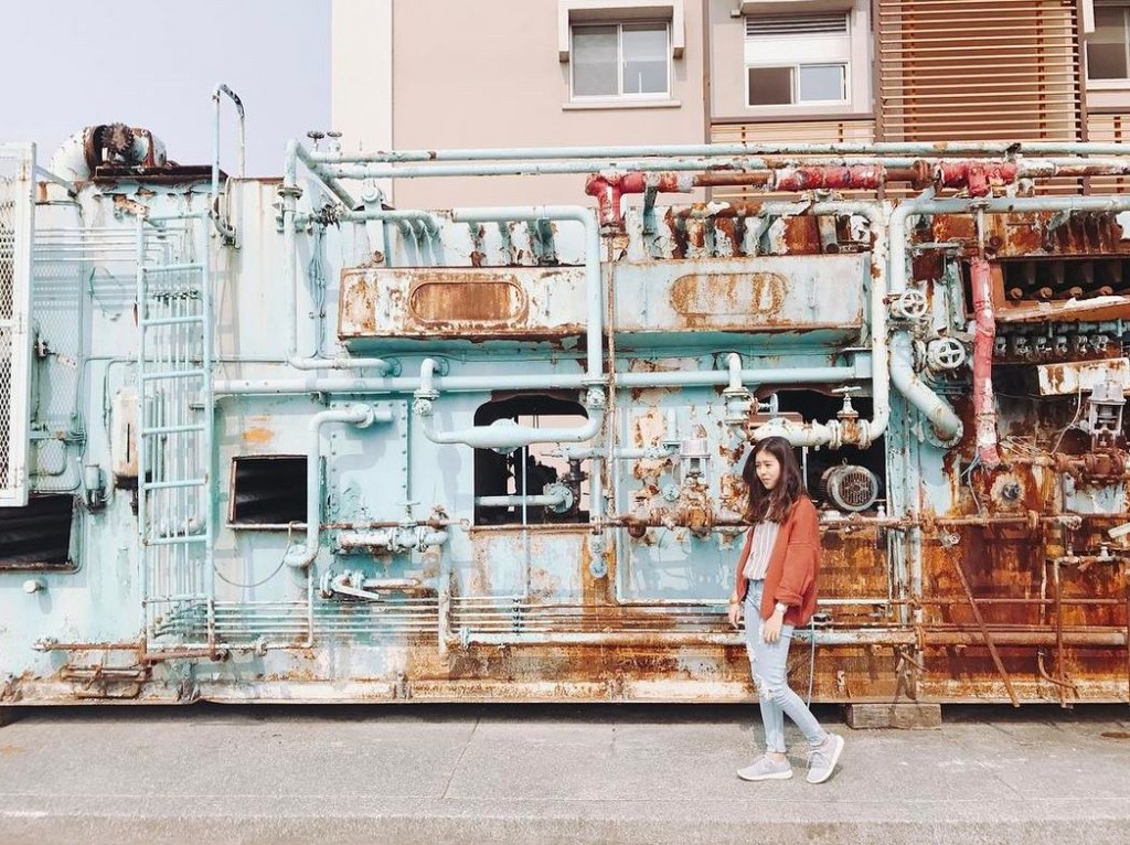 ▲▼老舊建築與生鏽機械也能拍出個性照。(圖/IG@mingga_提供,請勿任意翻攝以免侵權)