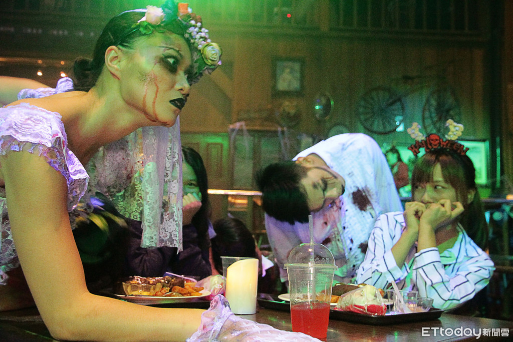 ▲在互動式的「惡靈餐廳」用餐,會邊吃邊尖叫。(圖/六福村提供)
