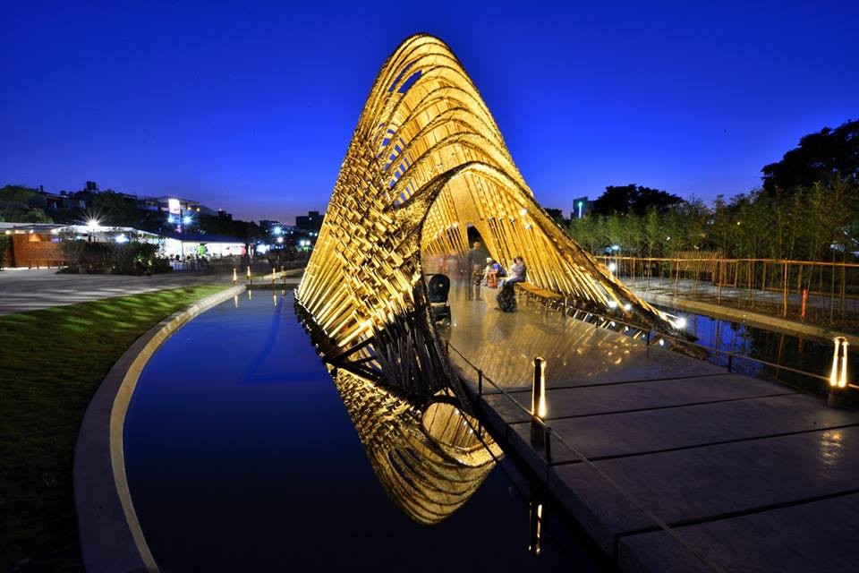 2018台中世界花卉博覽會(簡稱台中花博)從即日起登場,台中市政府在此次花博共規劃3大主要園區,其中位於豐原的「豐原葫蘆墩區」是此次花博唯一能免費入園的園區,園內最大看點,就是剛入圍2018建築界奧斯卡WAF世界建築獎的全台最大「竹跡館」,白天能感受光影穿透竹編縫隙間產生的多樣變化,晚上透過點燈,與鄰近水岸交織成浪漫風景,成為台中花博最大看點之一。