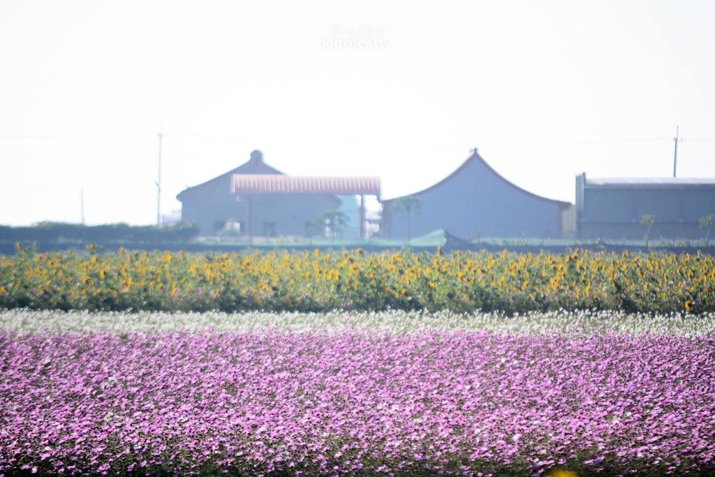 ▲開車下西螺交流道後往莿桐走,接著轉入通往饒平村的「雲林156線道」,縣道的兩旁映入眼前的是一大片的美麗花海。每年農曆年前後是雲林縣莿桐鄉最繽紛美麗的季節,這裡的花海隨風搖曳,整片花團錦簇的當背景好夢幻。偶而還會看到住在附近的小朋友跑到花田邊捕捉蝴蝶,這就是台灣鄉村最純粹也樸實的美景吧。