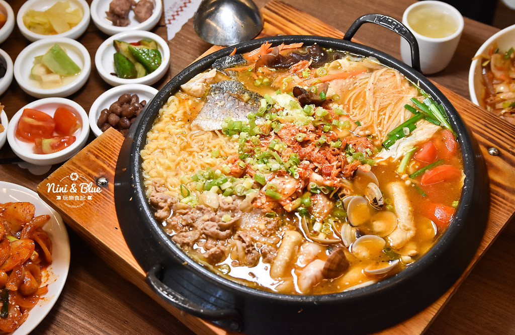 韓鄉韓國料理,彰化火車站、彰化統聯車站附近的平價美食,180元起就能享有40~50種小菜吃到飽。妮妮布魯總共吃過韓鄉四家不同分店,雖然每次來韓鄉也是為了吃到飽的小菜而來,但其實單點的餐點也很不錯,尤其是大推薦只要580元的四人份超多份量部隊鍋,還有韓式銅盤烤肉、石鍋嗶嗶飯、海鮮煎餅。妮妮布魯每次來韓鄉和朋友聚餐,大家都能吃得飽足、便宜又聊得很開心,真的滿適合同學會、朋友聚餐。