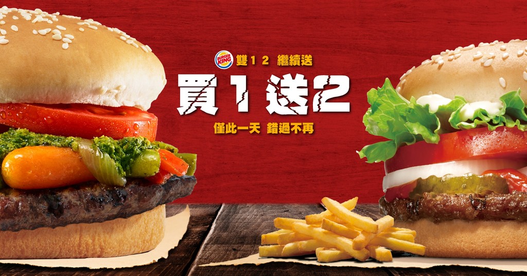 ▲漢堡王雙12祭出買1送2優惠。(圖/漢堡王粉絲專頁)