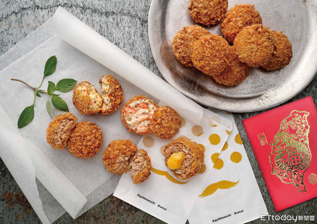 金葉名氣餅在春節期間推出「五福年節禮盒」,內含融合松露風味的松露牛肉名氣餅,牽絲起士牛肉、起士豬肉名氣餅,還有超人氣鮮蝦、蟹肉名氣餅,一次網羅5款特色風味名氣餅,送禮、自用兩相宜。禮盒還特地選用紅色外盒搭配金色字樣,2大色系更添過年喜慶感。