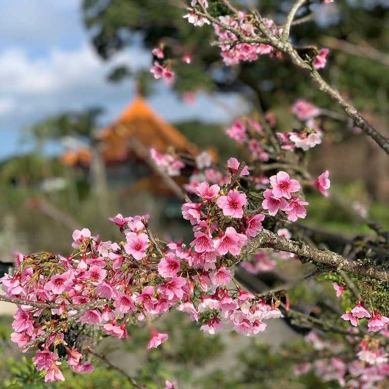 每年一到櫻花季,淡水天元宮種植的台灣山櫻花、三色櫻、日本吉野櫻等輪番綻放,美得像置身日韓賞櫻勝地,不用出國就能感受粉紅海魅力。第一波開跑的三色櫻,去年大約一月底才進入花期,今年受暖冬影響,提前了兩周登場,天元宮指出,這兩天因為在施工,車子不能上來,建議到春節期間再來朝聖。