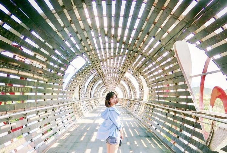 三鶯龍窯橋位於三鶯之心空間藝術特區旁橫跨鶯歌溪,是個看夕陽的好地方,串連了新北市和桃園自行車道,外觀由白色與紅色線條組成,橋的頂部是龍頭造型,夜晚的橋身還有璀璨的光雕秀,走進橋內猶如進入了時光隧道,呈現出和白天截然不同的風貌,「風乘雲,龍吐珠,光成影,陸相連」的設計概念便是由此而來。