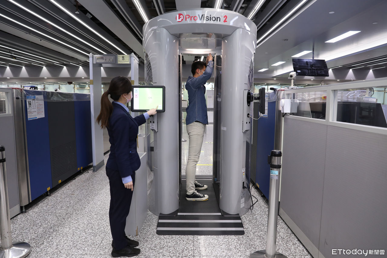 ▲桃園機場安檢設置人體掃描儀,可補足金屬門無法偵測的物品,兩者相輔相成、提升飛行安全。(圖/記者黃克翔攝,下同)