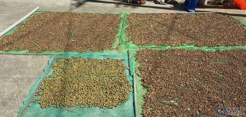 ▲遍地布滿收成的苦茶油籽,經曝曬後再榨製成苦茶油。 (圖/記者林俞均攝)