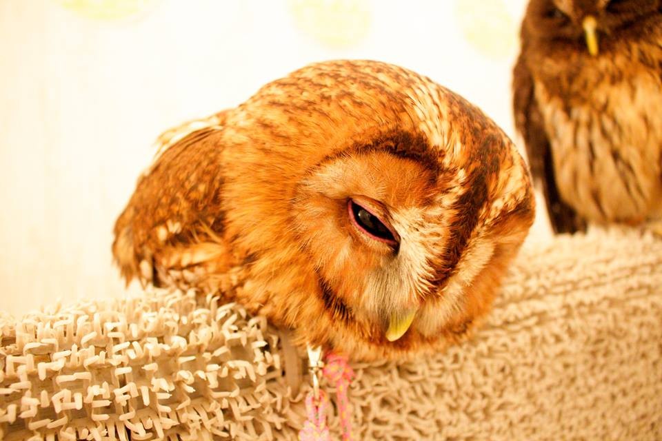 動物咖啡店最近在秋葉原刮起一陣旋風,像是貓咖啡、兔咖啡、爬蟲類咖啡以及最新的貓頭鷹咖啡店。這間東京貓頭鷹咖啡店(Akiba Fukurou)裡面約有25種大小和品種各異的貓頭鷹,空間不是很大,鳥兒在房間四周棲息,很乖。不像東京其他貓頭鷹咖啡店,這家允許客人和貓頭鷹互動,花大約500台幣就可以選鳥,讓牠和你坐在一起,你也可以摸牠。
