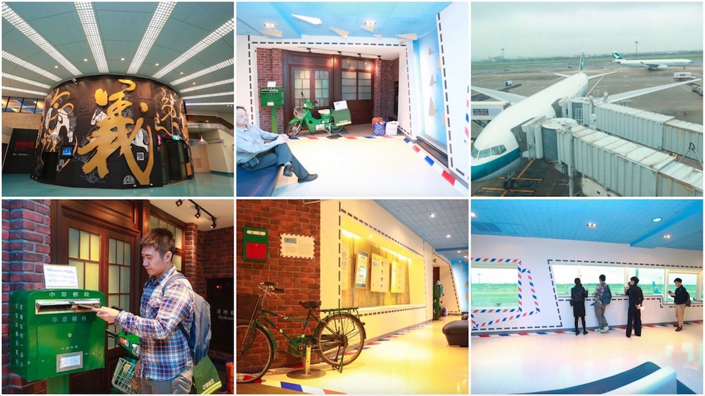 桃園機場與中華郵政公司合作,特別打造的「百年郵政候機室」,候機室空間中郵差送信用的機車,把大家的時間都拉回到曾祖父那個年代,搭配著百年郵政大事紀的介紹,旅客就像是進行了一場時光之旅。
