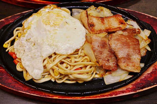 松阪豬肉旁邊的鐵板麵幾乎是吃排餐不可少的好朋友,醬料部份則是選擇蘑菇醬和黑胡椒醬的雙醬組合,沒想到這樣醬料這樣的混搭組合也還蠻好吃的,蘑菇的甜中帶有黑胡椒的辛香,會越吃越開胃。
