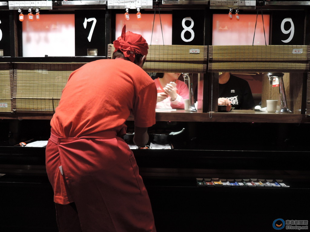 為了服務比較內向的旅客,日本終極絕招—-「內向者服務」,客人可以享受100%的個人空間,從頭到尾都不需要面對其他人,唯一互動的部分是一雙手—-端麵給你!
