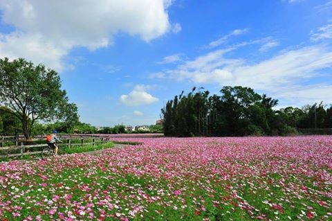 ▲騎自行車能欣賞周遭花海風景(圖/翻攝自桃園事粉絲專頁。)