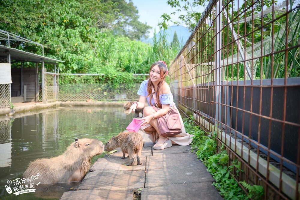 ▲拿到牧草和紅蘿蔔,滿分興奮的往可愛動物區,這裡有超多隻水豚,福嘟嘟的好可愛,看牠們慵懶的樣子也太享受。