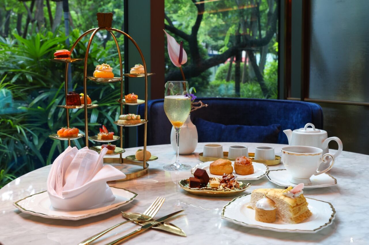 ▲宛如珠寶櫃般的三層塔上桌,每一層都藏著小驚喜,搭配茶香與窗外的綠意,這就是勤美洲際最經典的午後款待。
