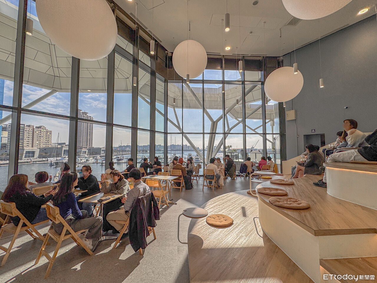 而位於商場2樓的「FULA COFFEE 芙拉咖啡」,是現在最受歡迎的海景咖啡廳之一,可說是一位難求。階梯式座位設計,讓每一層視線都能遠眺高雄港灣風光,讓人彷彿來到釜山的錯覺,記得內用需先抽號碼牌,等待現場人員協助安排座位。