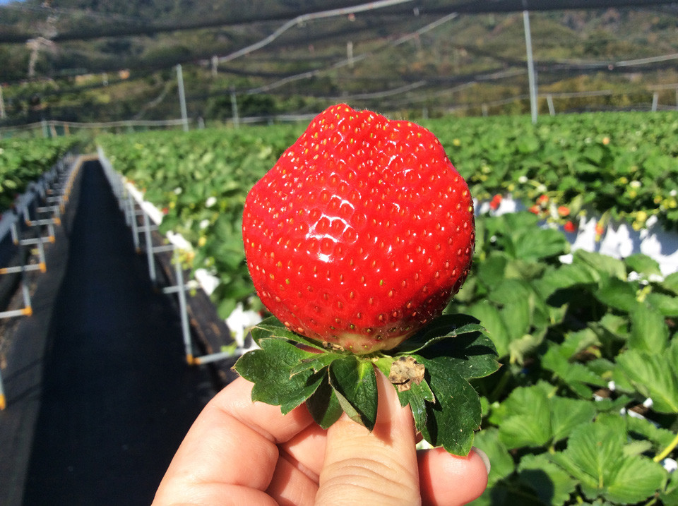 地形環境自成一格,遠離喧擾,充分享受不被打擾的採果空間。這裡因地勢較高,溫度較平地略低,以高架盆栽方式種植,草莓生長得特別好,滿田都是特級的大顆草莓,採起來相當過癮。