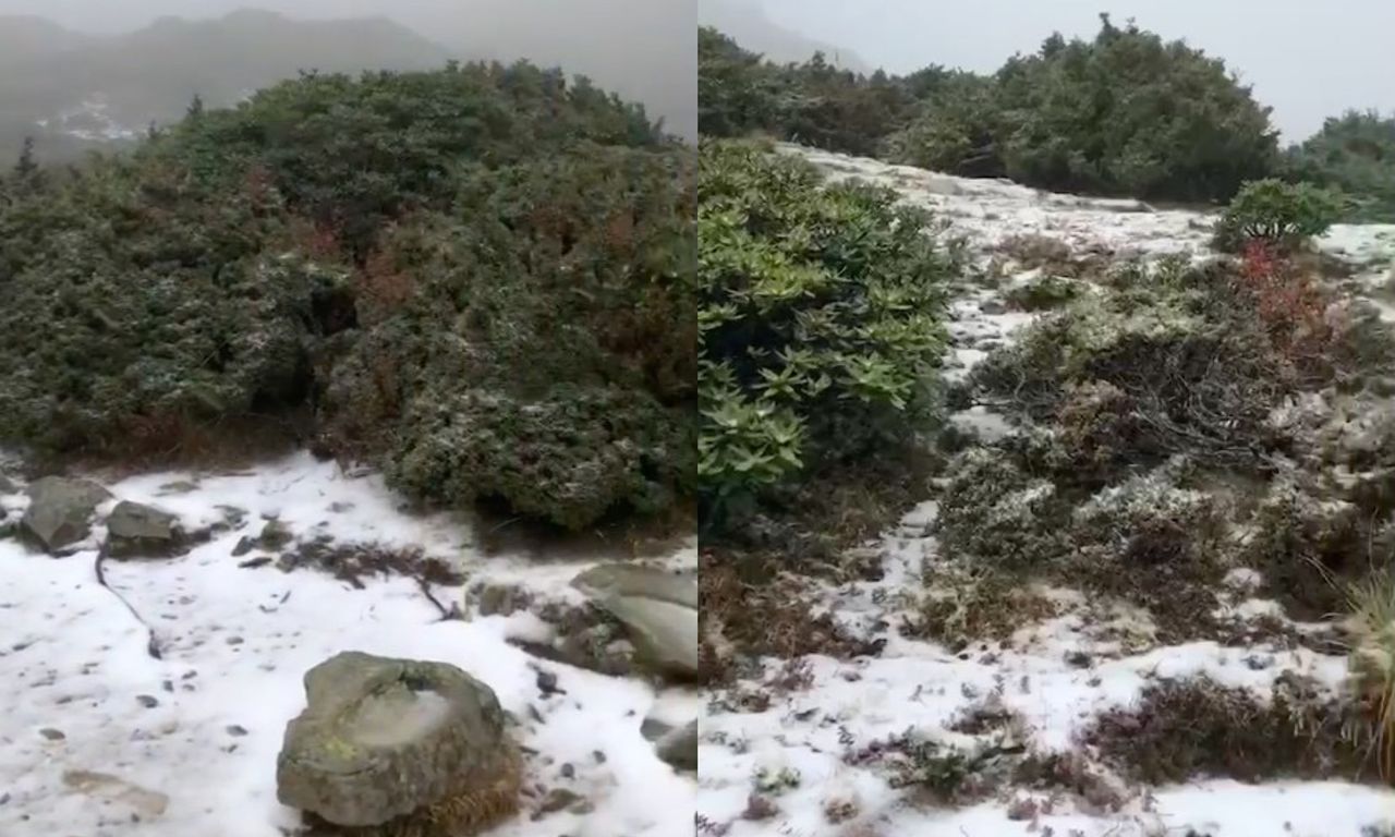雪山下雪了!今(10)日早上10點前,雪山下了今年第一場雪,就有民眾搶先捕捉到這片夢幻的雪白風景,雪霸國家公園管理處表示,目前雪已經停了,由於山上氣溫很低,因此雪還沒完全融化,積雪厚度約有3~5公分。