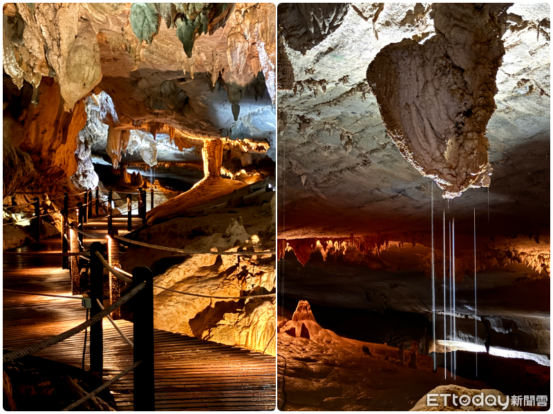 ▲藍洞布滿大量石筍、石柱和鐘乳石,因紋理和岩壁呈現肉色,又被稱作「內臟洞」。(圖/記者彭懷玉攝)