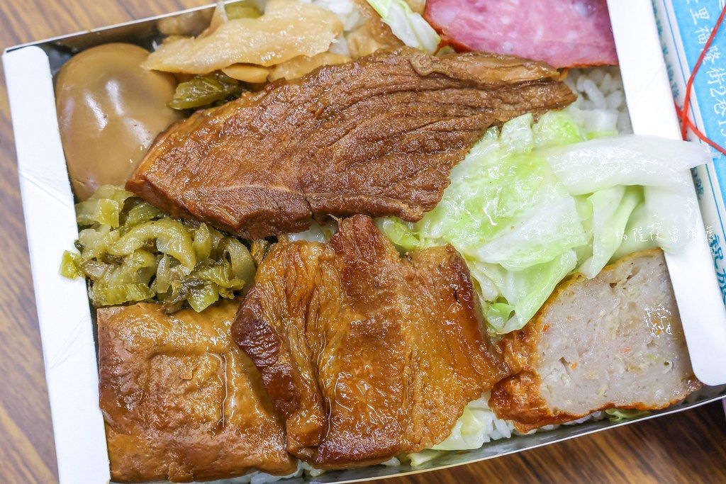 走傳統路線,配菜有兩塊滷肉、豆干、滷蛋、酸菜、香腸、雞捲、菜脯和高麗菜等菜色,算一算有九種配料,裝滿滿相當豐富。兩塊滷肉有肥有瘦,滷得相當入味,不過是偏甜的味道,我覺得很好吃,米飯煮得Q彈有嚼勁,粒粒分明很讚,其他配料也都很優秀,下次再來還會想買,要是喜歡吃辣的,冰箱有提供辣椒可以自己加。