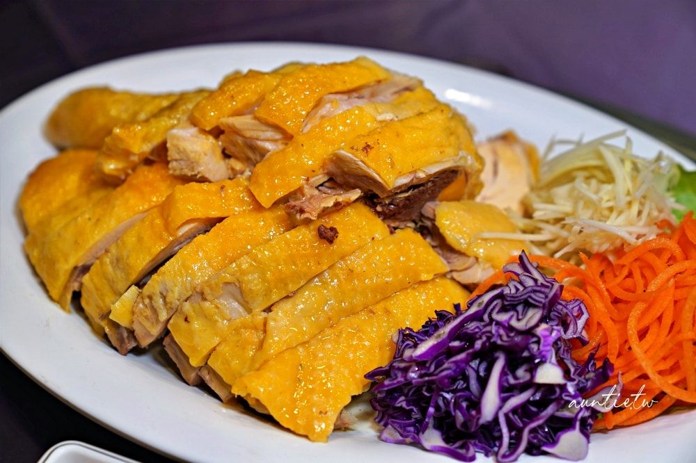 土雞外皮呈現金黃色,油油亮亮的油脂豐富,可以搭配客家桔醬以及辣椒醬油,土雞本身的肉質非常好,不乾不柴,滑嫩又帶有肉汁。