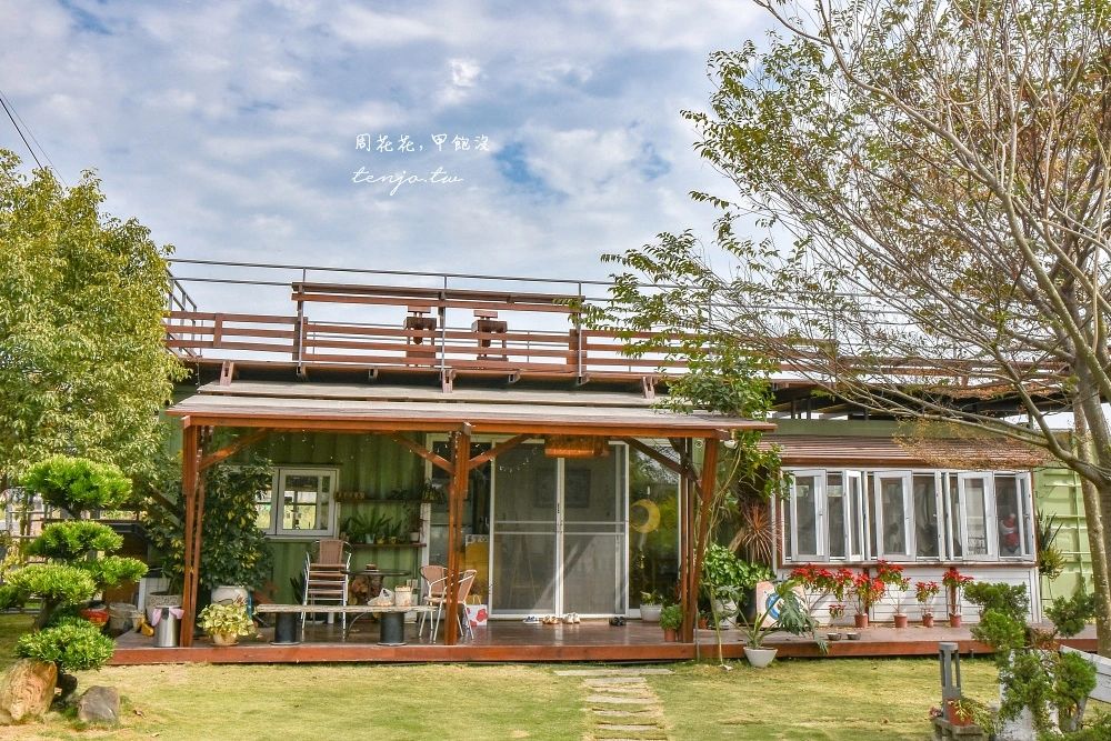 ▲天氣熱的話可以坐在室內區,花躲田間咖啡廳本體是用貨櫃屋改建而成。