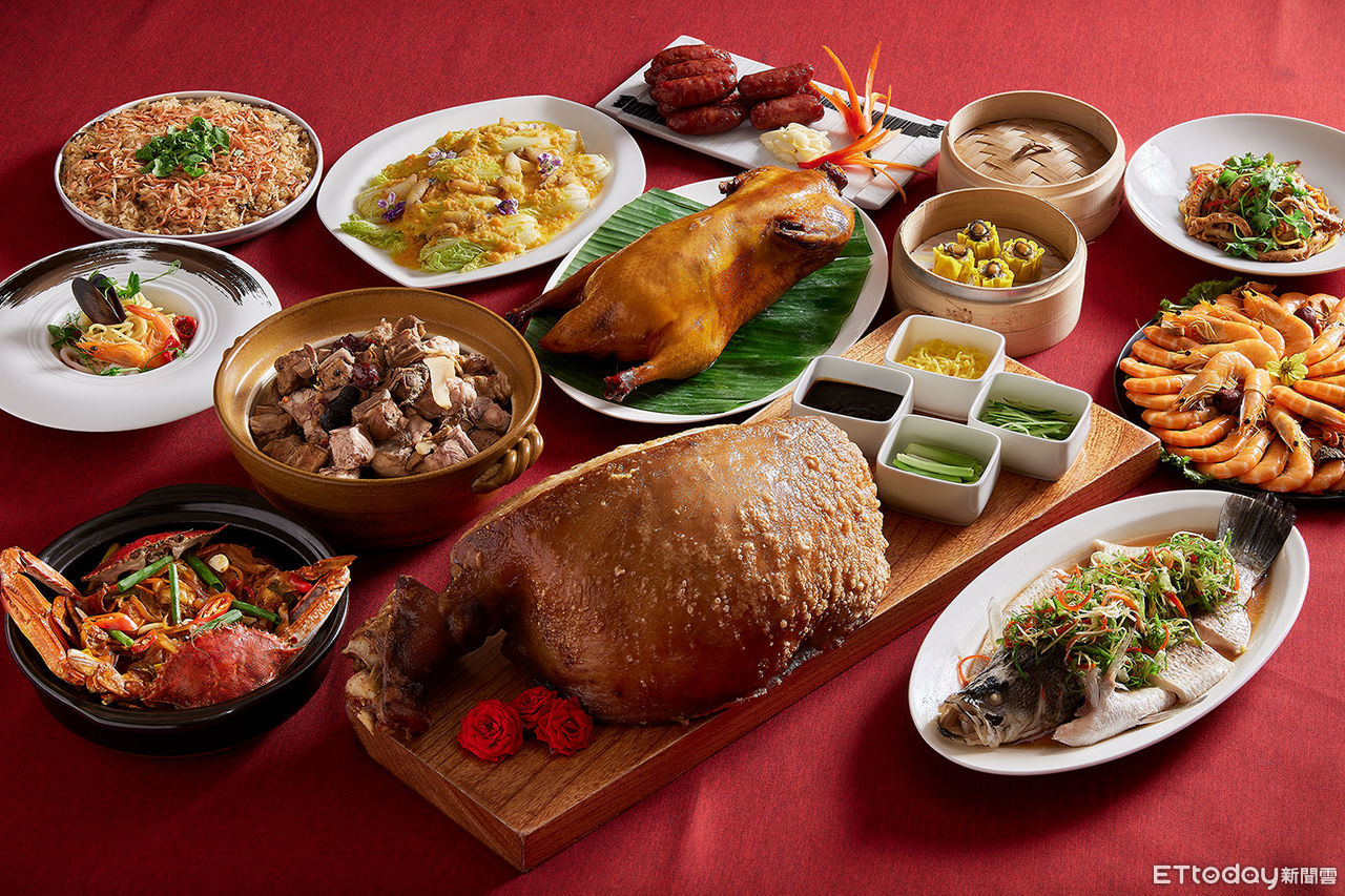 中華料理主題自助餐即日起至3月4日的午、晚餐期間無限量供應,包括外皮酥脆的 「秘製香料烤豬腿」、結合鮮甜螃蟹與香辣濃郁醬料的「乾燒螃蟹」、融合蝦子鮮甜與紹興酒醇香的「宮廷蔘紹興醉海老」、以四川經典紅油為基底搭配特製調料的 「紅油牛肚絲」。