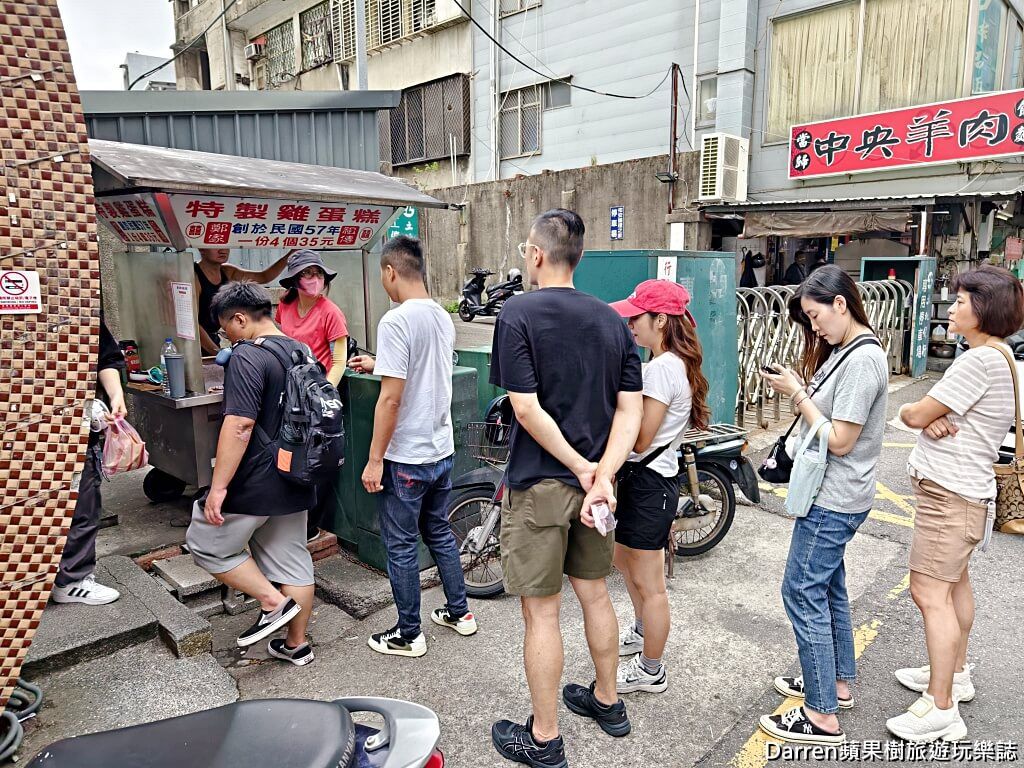 從早上7點半就開賣,營業到下午6點半,網路評價4.1顆星,通常假日來到這裡都會排隊,而且越晚人越多,很巧的是排我前面的客人,剛好也跟我一樣吃完老陳家中央市場糯米水餃就來買雞蛋糕。