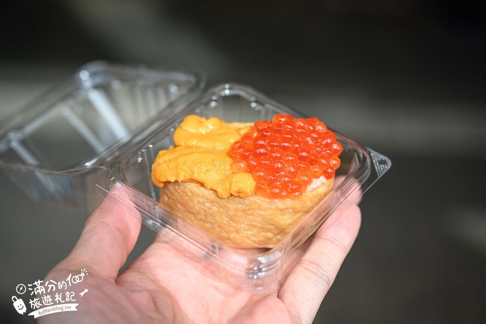雖說我們已經吃得很飽,但滿分還是忍不住買了兩顆,一個是明太子鮭魚,另一個是鮭魚飯糰。超開心的買了丸豐御飯糰屋,每顆飯糰都飽滿扎實,大口咬下超級好吃,其中又以明太子口味的讓滿分最愛,飯糰米飯好香,一口接著一口,真的會停不下來。