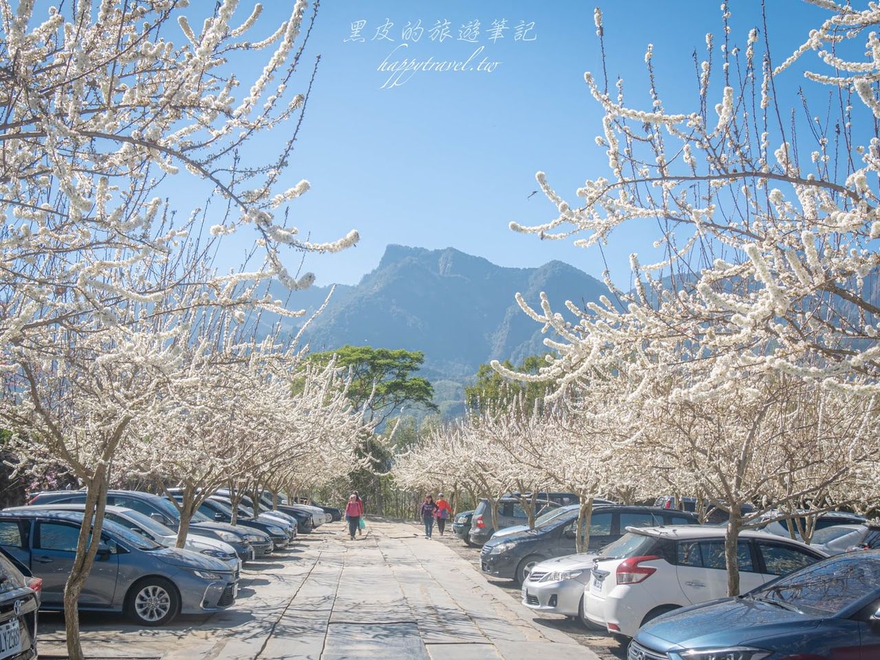 沿途都會有很多人指揮交通引導各位前往,在入口處會有售票口,以人頭計算每人50元/人,在這邊會給各位一張停車卡,各位按照停車卡的編號到指定的停車場,到停車場的時候需要另外繳交100元停車費,這次我運氣特別好,剛好被安排在草坪頭最漂亮的1-2停車場(最高處的停車場),如果各位是被安排到比較下坡處的停車場建議一定要步行到1-2停車場賞花,這裡的李花是整個草坪頭開得最漂亮的地方。