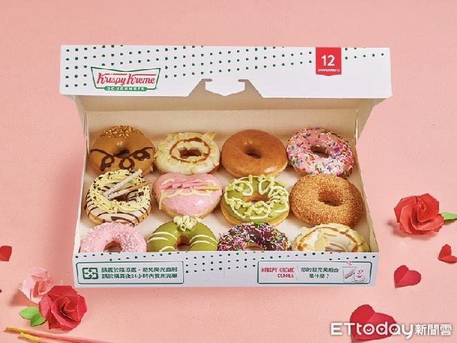 隨著情人節即將到來,美式甜甜圈「Krispy Kreme」找來Pocky合作打造3款限定甜甜圈,在甜甜圈上搭配經典Pocky 餅乾棒,雙重吃法一次滿足,2月13日起正式開賣。另一甜甜圈品牌「Mister Donut」也推情人節限定愛心甜甜圈,搶攻甜蜜商機。