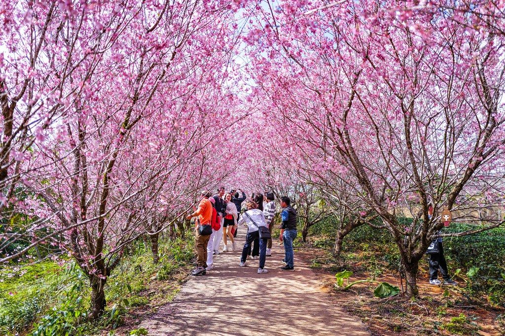 宜蘭熱門賞櫻景點「櫻悅景觀渡假別墅」位在宜蘭大同鄉,每年到了櫻花盛開季節,這裡會聚集許多為了賞櫻而來的遊客。這裡遍植許多粉色系櫻花,有吉野櫻、昭和櫻、富士櫻與香水櫻等,正逐漸綻開,其中最吸引人的就是長達65公尺的宜蘭櫻花隧道,吸引很多人來拍照打卡,美不勝收。