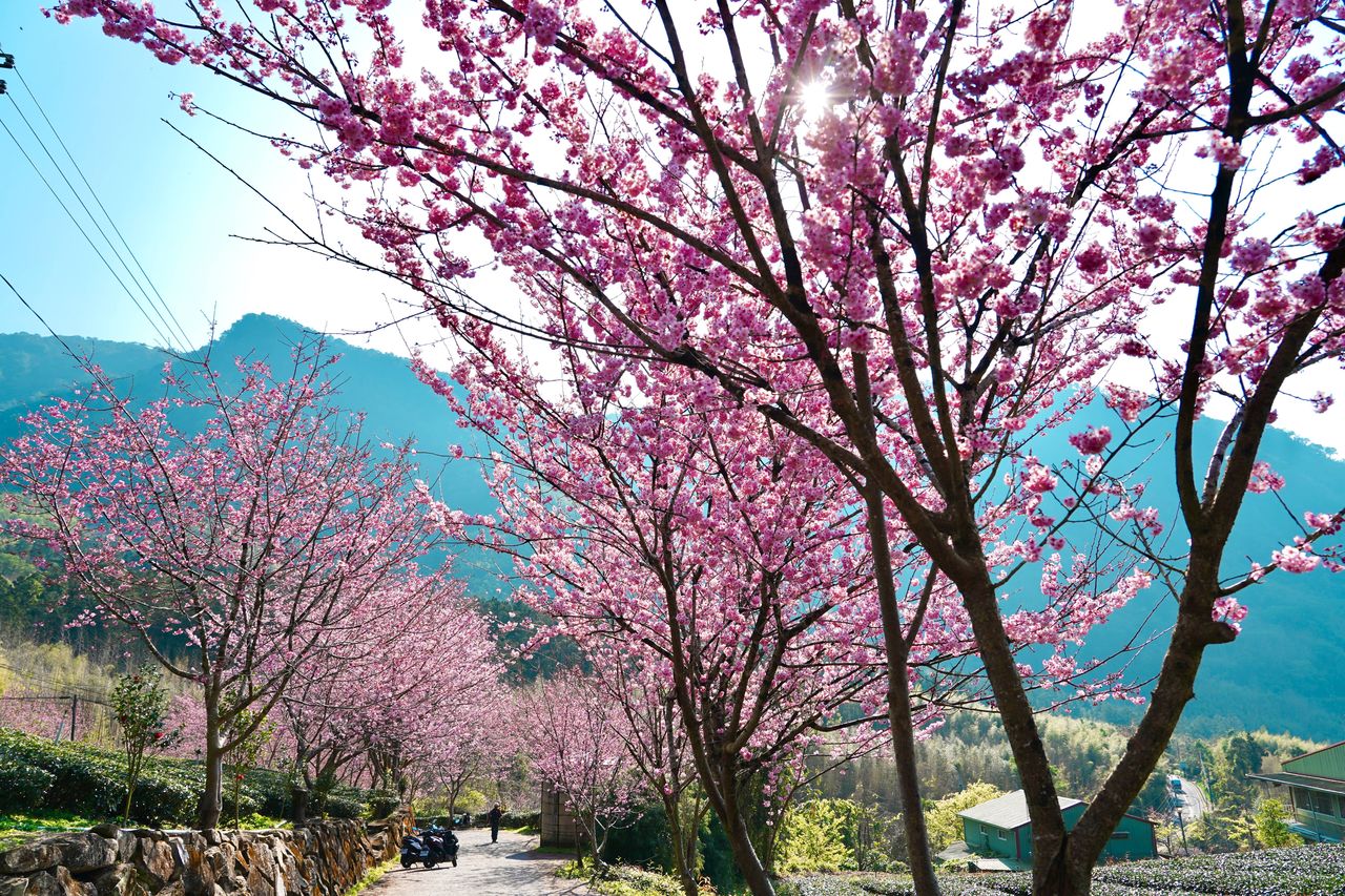 此外,中興製茶所也是不可錯過的賞櫻景點,目前園區內的櫻花正盛開中,粉色櫻花海與翠綠茶園及遠山交相輝映,構成一幅迷人的自然畫卷,旅人也可在此參加茶席體驗,細品高山茶的甘醇風味,還能親自走入茶園採摘茶葉;位於嘉130鄉道9K前後的昭和櫻同樣盛開中。
