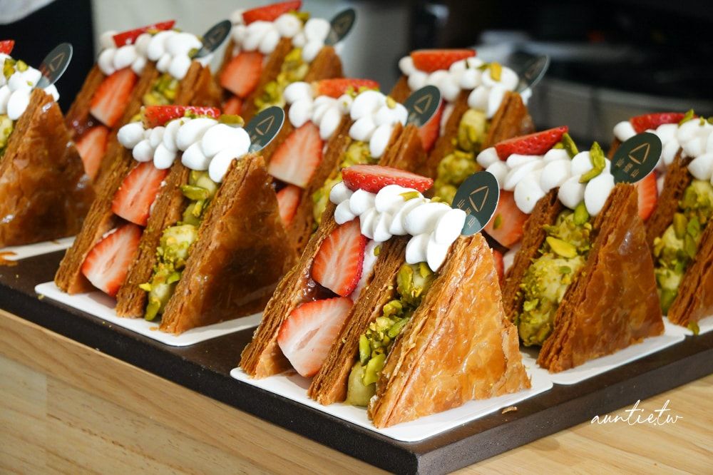 公館站台大校園旁的「山摺山甜點坊」,是最近吃到的還不錯的千層酥甜點店,有當季的草莓千層,還有加了開心果的綜合千層,口感酥脆,而且甜度都不會太高。開心果內餡超好吃,一個份量很大,兩個人吃剛剛好。內用只有兩桌,有候位的話限時一個小時,可以先訂位,千層酥就是要馬上吃才好吃!
