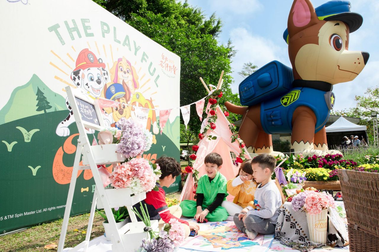 「2025台北花伴野餐」本周六(15日)在大安森林公園開展,今年規劃五大主題野餐區,還有文青市集、花主題的浪漫野餐場景。本次首度結合「汪汪隊立大功」,高約兩層樓的「阿奇」、「毛毛」大型氣偶展,8日開展至今已吸引逾萬粉絲到場。