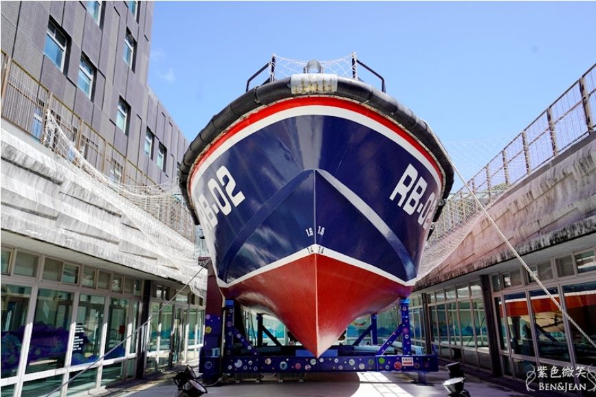海洋職涯探索基地-RB02搜救艇登艇體驗,清潔費用50元。畫面中的這船來頭可不小,它可是救人無數的海中不倒翁搜救艇RB-02英雄啊,應該向它行個致敬禮才對!因為在海中執行搜救任務近20年,所以2020年除役後,來到海科館展開它的新任務,展開海洋教育的推動,讓更多朋友認識它。這台最特別的地方在船體像不倒翁,在海面上傾倒翻覆時,能在10秒內自行翻正,第一次聽到這樣的船。