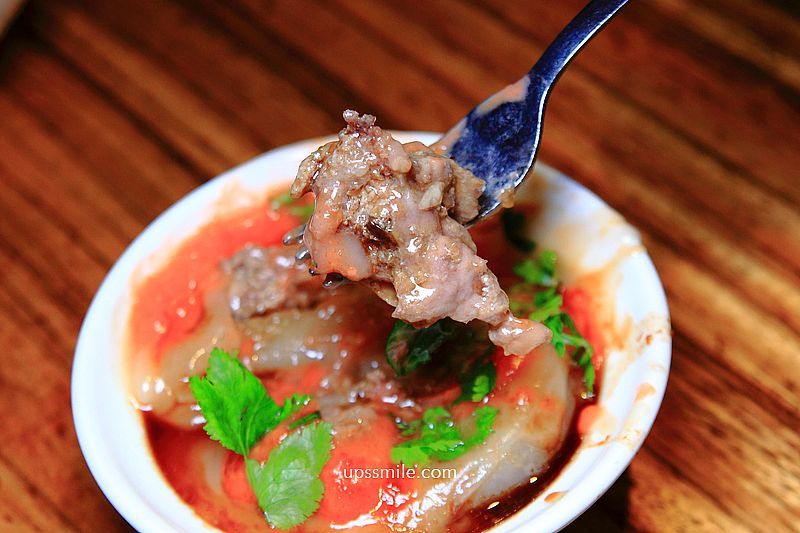 ▲肉丸店內稱肉圓,肉圓45元,淋上白醬與紅醬的肉丸,放上香菜,愛吃辣的要選有辣椒的。