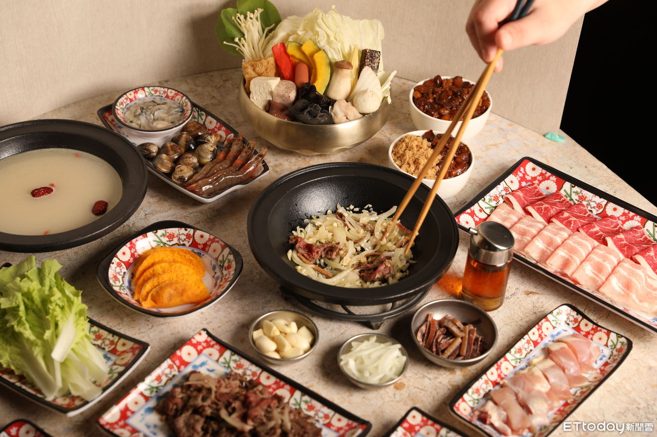 芡芳套餐包含湯底、肉品/海鮮及18款當季蔬菜盤,湯底部分,3大現炒系列為「芡芳石頭湯」、「雙份魷魚石頭湯」及「山珍海味湯」,其他還有「蒜香海鮮干貝白湯」、「白胡椒豚骨」、「奶香帕瑪森」及「經典麻辣鍋」。