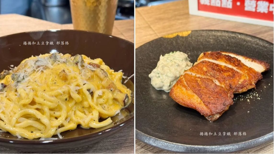 ▲每日限量五份的Carbonara義大利麵前菜煎舒肥雞。(圖/《捲捲&土豆拿鐵 美食旅遊生活》提供,以下皆同,請勿任意翻攝以免侵權)