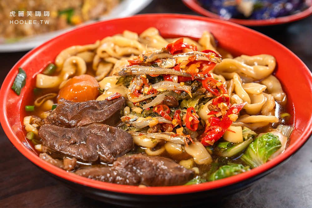 招牌必吃的牛肉麵是使用牛骨、雞骨、蔬菜熬煮高湯料理,紅燒湯頭濃郁甘醇,牛腱肉滷得非常入味,搭配紅蘿蔔、青菜平衡味蕾。