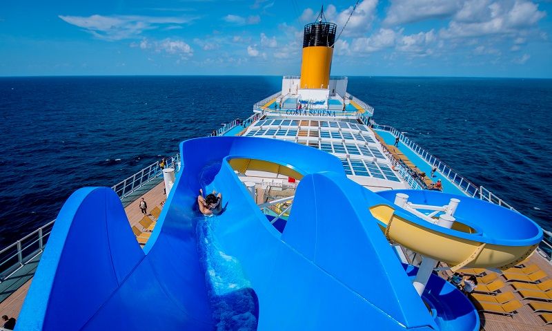 COSTA莎倫娜號是全家人的海上樂園,也是移動式的豪華度假村,船上有吃、有玩、有活動、還有住宿艙房,提供一站式的全方位度假體驗。舉例來說,一般水上樂園很受歡迎的滑水道,COSTA莎倫娜號也有,從頂層露天甲板的高處往下滑,享受海風吹拂、海景相伴,過程更刺激有趣。