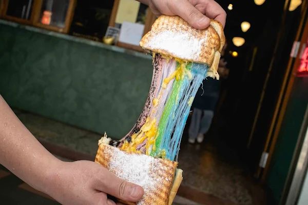 牽絲兩公尺,四種顏色莫扎瑞拉也太繽紛,佐以煉乳與蜂蜜帶出甜蜜芬芳,酥脆外皮包裹柔潤內餡,熱熱咬下整個乳酪爆出。