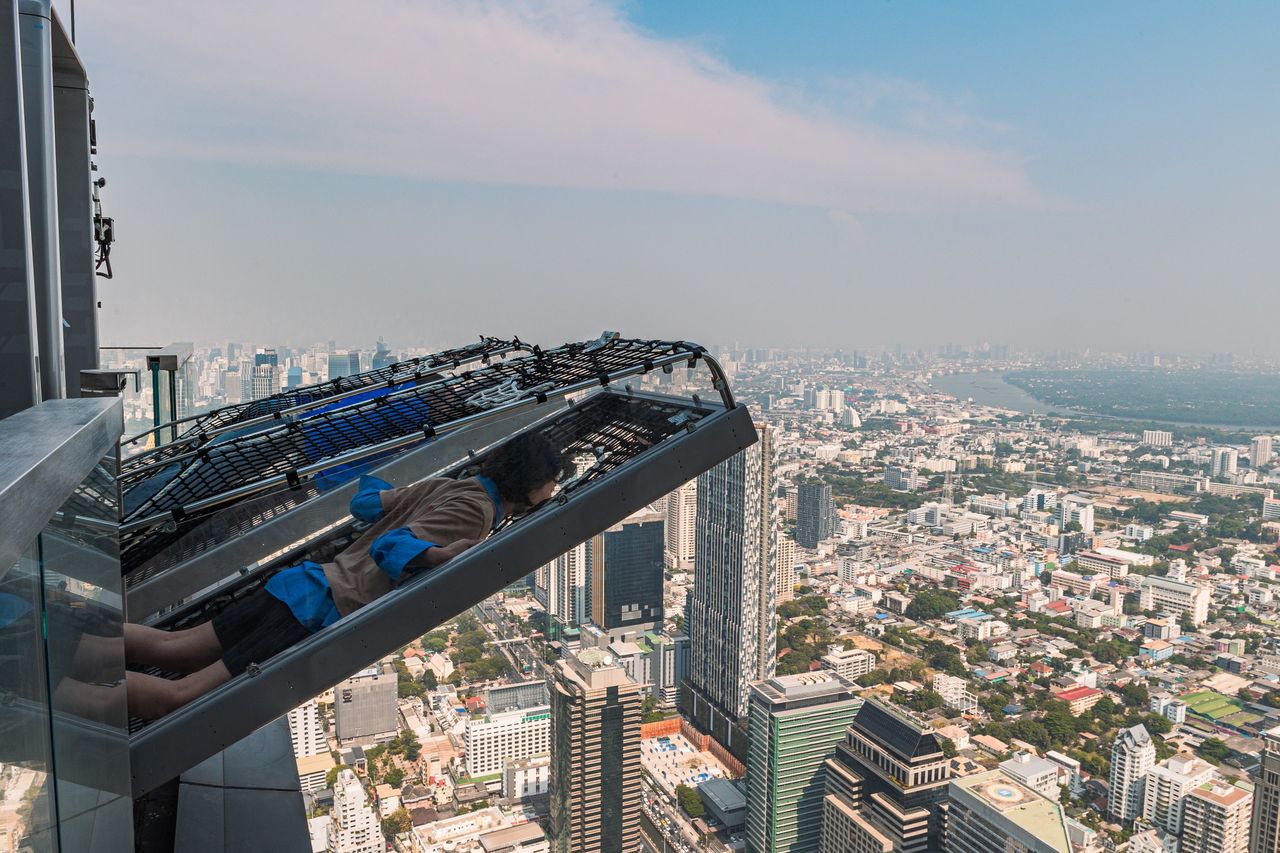 曼谷又有新景點可以去了!當地最高觀景台「曼谷王權Mahanakhon SkyWalk」現在推出全球第一個戶外傾斜觀景台體驗「Mahanakhon Bangkok I-Tilt」,讓你站在位於75層樓高的觀景台邊緣,以驚險的65度角向外傾斜俯瞰都會景觀,挑戰自己的膽量。