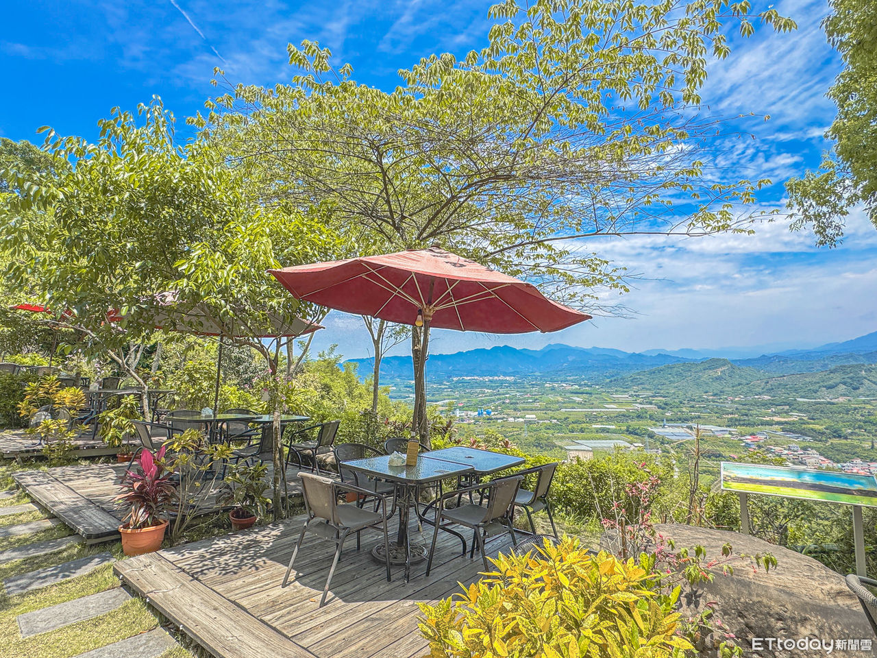 最受歡迎的戶外用餐區分為紅色陽傘區和半開放式座位區,紅色陽傘區能讓每個座位都飽覽山景,而半開放式座位區,則將綿延山林景觀作為最天然的「壁畫」,旅客用餐之餘,也能走到欄杆旁拍照。業者也表示,這裡最推薦的觀景時刻是夕陽時,若幸運的話,甚至能欣賞雲海,是在地人才知道的約會、用餐去處。