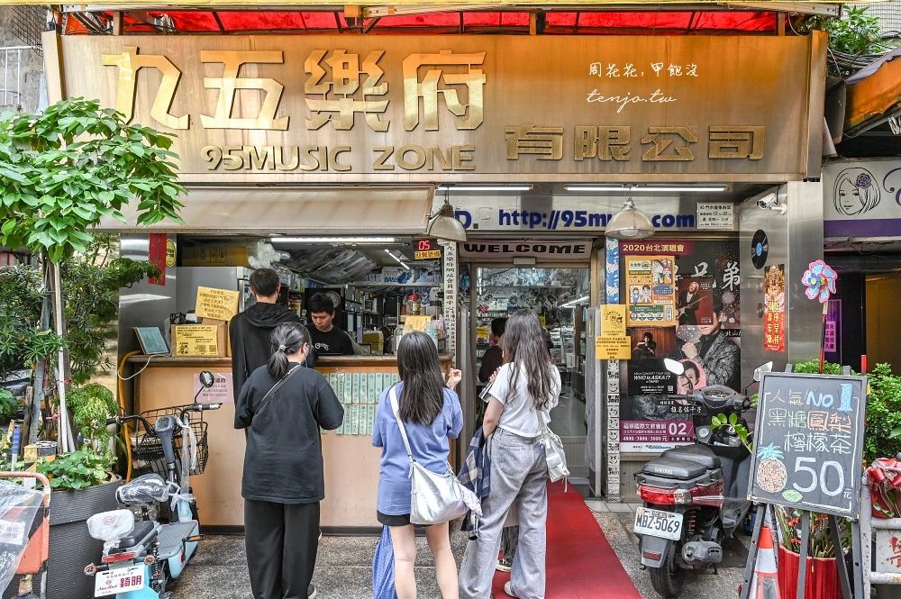 萬華西門町漢口街巷內竟然有如此平價的飲料店,而且還是藏身在老字號唱片行裡面,「95樂府」菜單飲料只要15元起,最貴不超過50元,這裡可是台北市中心的觀光鬧區,還賣這麼便宜,只要是營業時間,無論何時經過門口總是大排長龍,除了便宜外味道還很不錯呢!