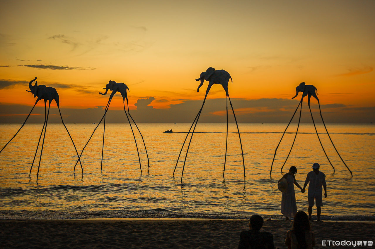 Sunset Sanato Beach Club結合住宿、餐廳與娛樂體驗,標誌之一非「異形沙灘」莫屬,沙灘上各種特殊雕塑、裝置藝術、延伸感十足的海上木棧道,讓旅客盡情拍照。這裡也被譽為是富國島看日落最美的沙灘,踩著浪花、欣賞夕陽慢慢落下,還能邊聽歌手現場演出邊用餐,氛圍感瞬間拉滿。