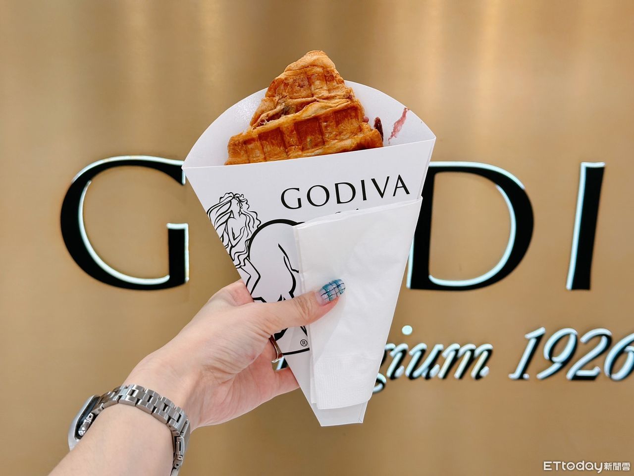 GODIVA選用世界第4種巧克力「紅寶石巧克力」推出全新甜點「紅寶石巧克力可芙」,現烤可芙外皮金酥脆,包裹著紅寶石巧克力、黑巧克力,大口咬下還有巧克力流心,口感酸甜不膩口,售價189元,即日起於販售可芙之門市上市,季節限定、售完為止。