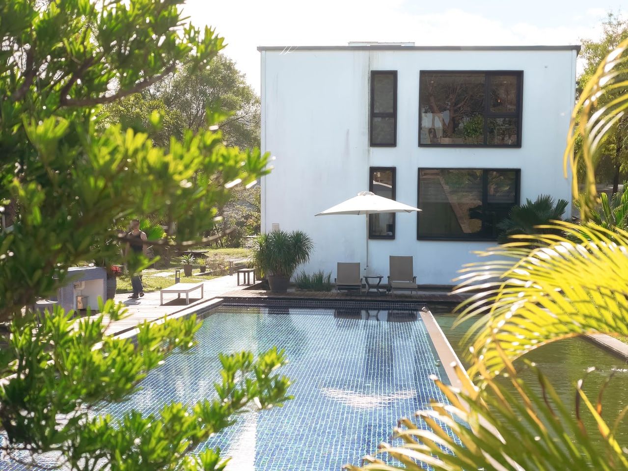年初才來住悠悅光新樂館,不到一年的時間馬上又來住這間質感宜蘭民宿「悠悅光Aura Villa」。這已經是我第三訪了,每一次來都可以發現不同的細節與美,純白的現代設計建築民宿,不僅有網美泳池,包棟的話還有烤肉空間、桌遊與卡拉OK的選擇與服務。
