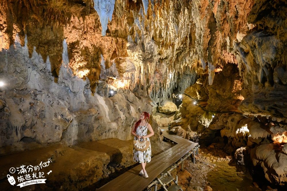 這個鐘乳洞是沖繩中部最大鐘乳石洞穴,被滿滿的鐘乳石包圍,我覺得很漂亮也很震撼,重點是這些天然的鐘乳石也很像是一座座藝術品,數大之美,感覺每一階段的鐘乳石都不太一樣,再加上燈光的布景,也讓人有漫步地下宮殿的感覺,站在步道上,與大片的鐘乳石合影,隨便拍都好看!