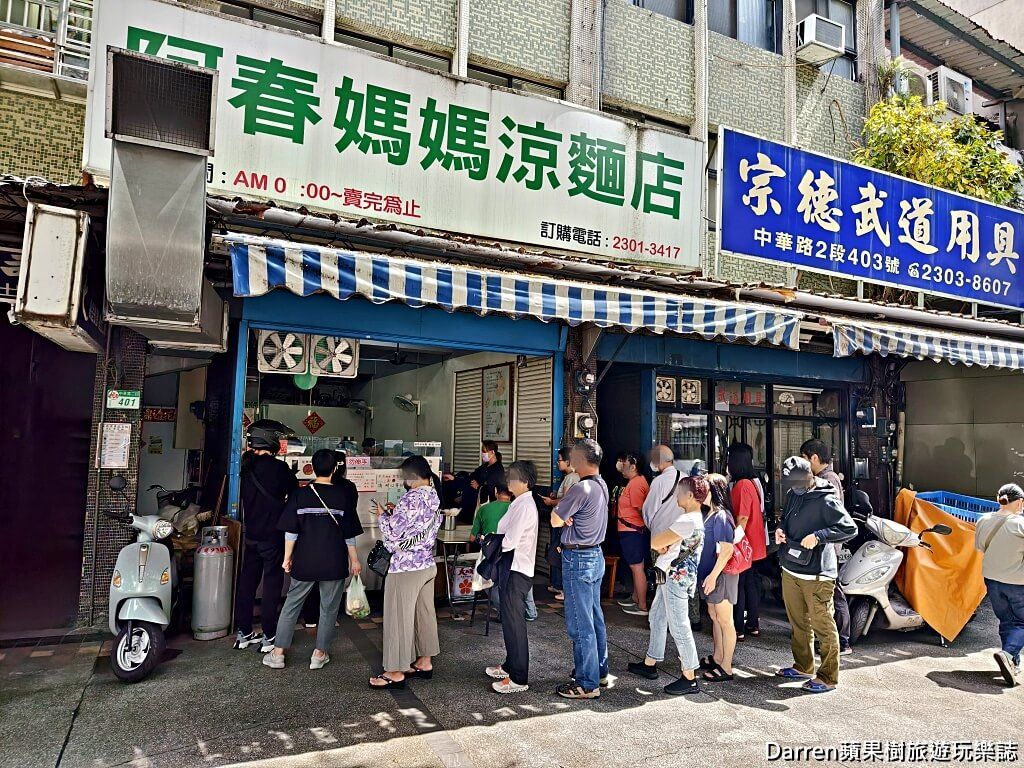 南機場美食推薦這家「阿春媽媽涼麵店(張春涼麵)」,網路評論破千則,營業時間從早上7點開賣就有人來排隊,可以說是超人氣中正區早餐!價錢不貴、份量又多,不少在地人都會來買,喜歡吃辣的朋友建議可以加點辣椒更夠味。